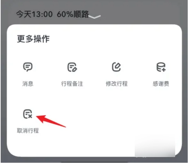 在展开的页面选项里,点击取消行程。