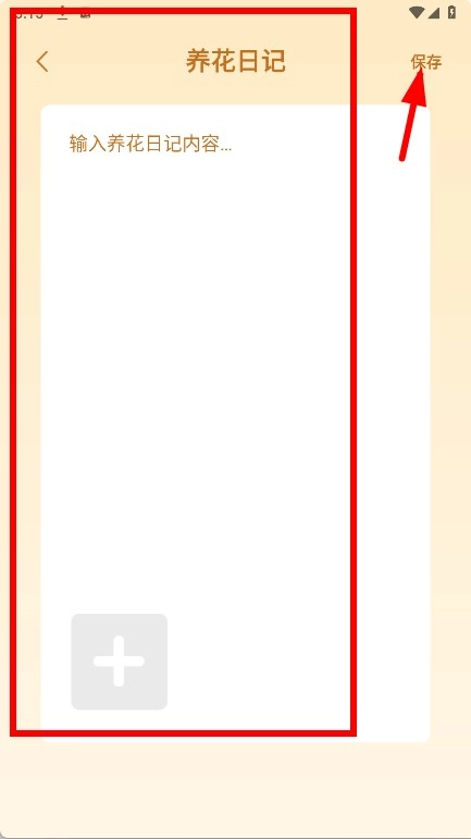 在编辑界面的输入框里填写养花日记的内容,之后点击右上角的保存按钮。