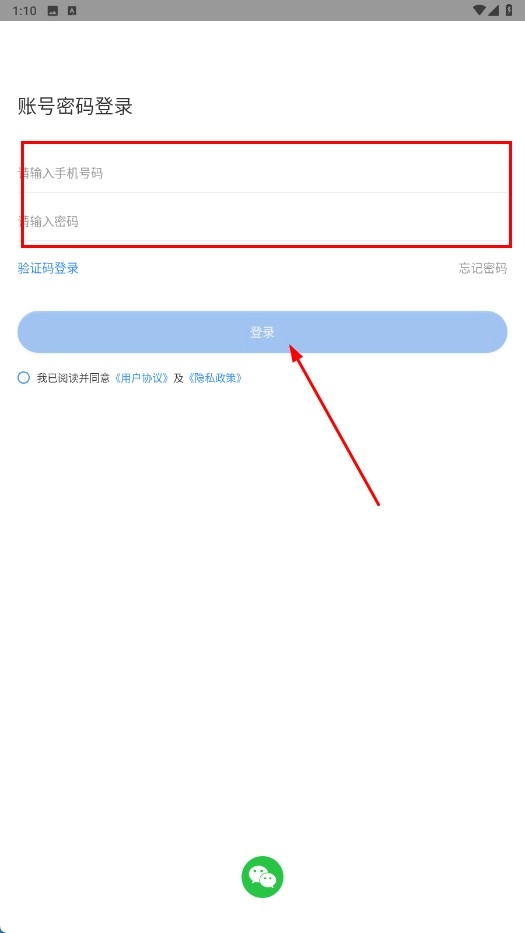 也可以选择账号密码登录方式,输入手机号码与密码,待信息填写完毕后,点击【登录】功能按钮即可完成登录操作。