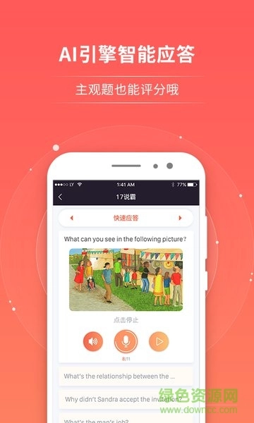 及英语听说培训服务,还拥有丰富的英语听说素材资源,学生能够随时随地进行自主练习,欢迎大家前来体验。软件介绍