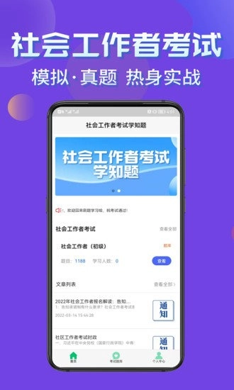 社会工作者考试学知题 汇聚了多样的学习资源,大量题库可供练习,专门为备考社会工作者考试的用户打造真题实战演练平台。借助模拟考试,能助力大家迅速找出自身薄弱环节,通过查漏补缺攻克知识难点,从而更高效地通过考试。