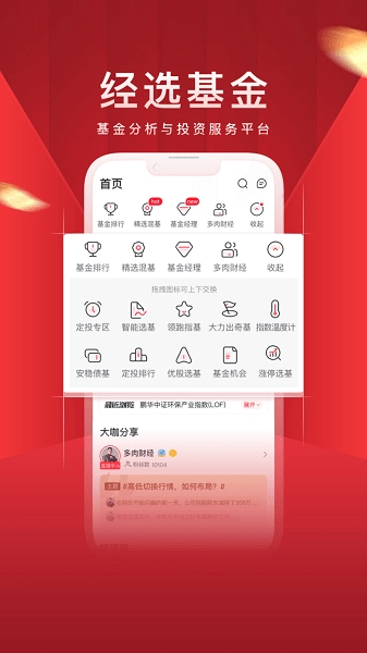 智能选基: 依托特色大数据分析辅助决策,通过多策略、多维度的筛选模式,精准匹配适合你的优质基金,让投资理财更省心、更安心