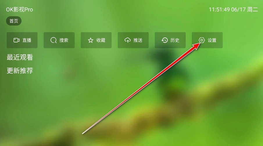 打开OK影视电视版,点击设置。