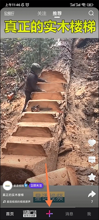 1、进入微视后点击底部的加号;