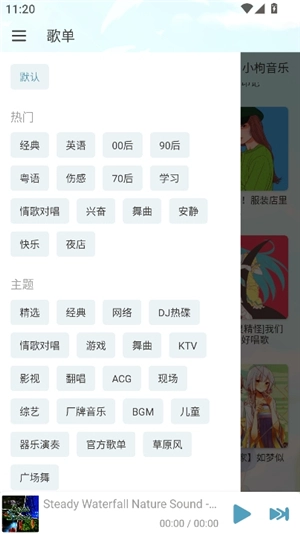 2、点击界面上方的“默认”按钮,就能在此处设置标签,以此筛选出想听的歌曲类型。