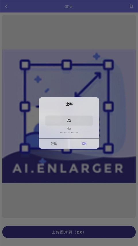 3. 接着挑选合适的放大倍率,系统提供2x、4x、8x这几个选项,选好后点击上传图片即可。