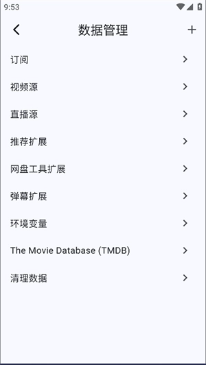 3、点击数据管理后,会出现订阅、视频源、直播源等选项,便于添加源文件。