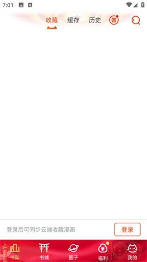 2、进入【书架】页面,查看收藏的漫画。