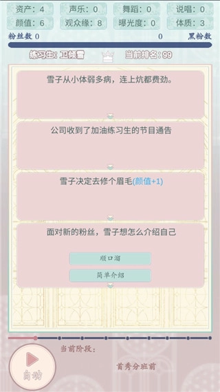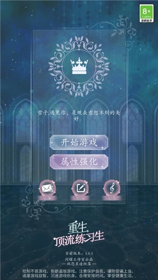 《重生顶流练习生》是一款极具趣味的选秀题材休闲文字游戏。它以精美的二次元动漫风格搭建游戏场景,不仅拥有超高自由度与丰富的可选择元素,更凭借精彩的剧情设定,为玩家带来沉浸式的游戏乐趣。