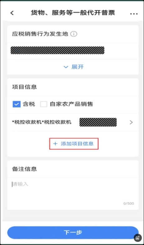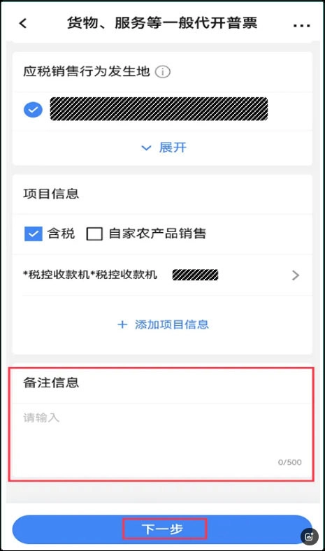 纳税人可以在备注信息栏填写相关备注内容,随后点击【下一步】按钮。