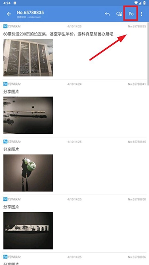 2、点击右上角po,再点击返回键。