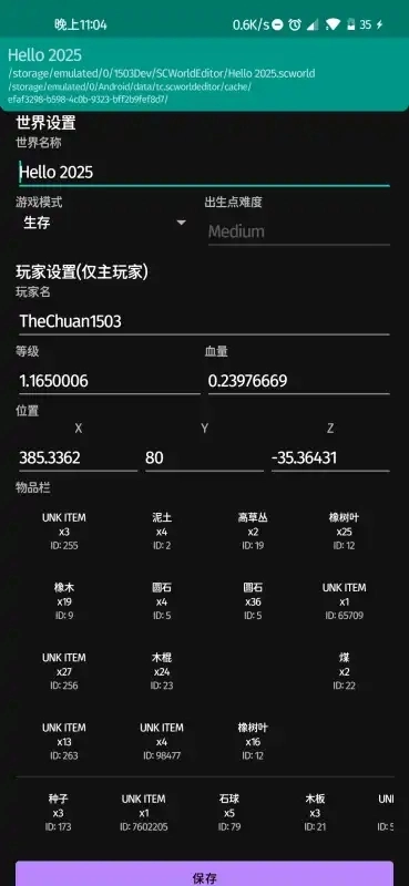3.将.scworld 文件复制到 /sdcard/1503Dev/SCWorldEditor/ 目录中。