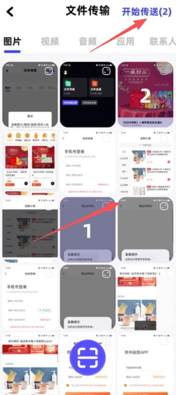 3、挑选好要传输的文件就能发送,使用其他设备扫描二维码就能快速接收文件。