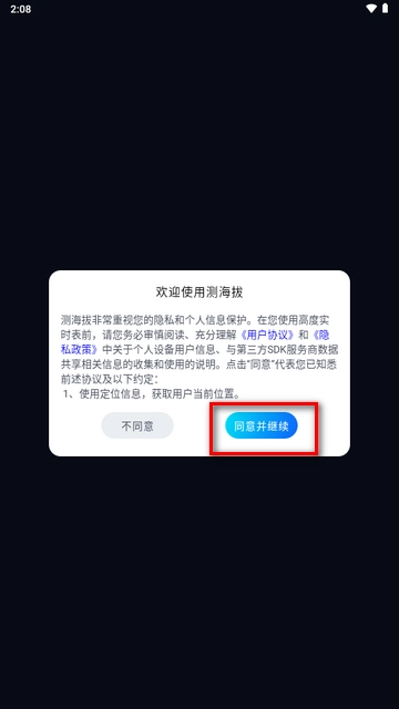 1、打开软件后,在用户协议中点击“同意并继续”。