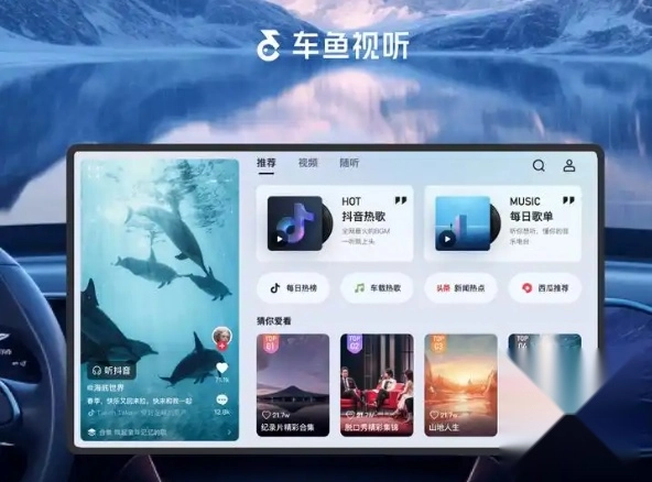 车鱼视听车载这款软件,整体上就如同抖音与汽水音乐的结合体,支持直接用抖音账号登录。它拥有海量的音乐和短视频资源,界面设计简约大气,能很好地适配多款车机系统,而且后续还会持续接入更多车机品牌!
