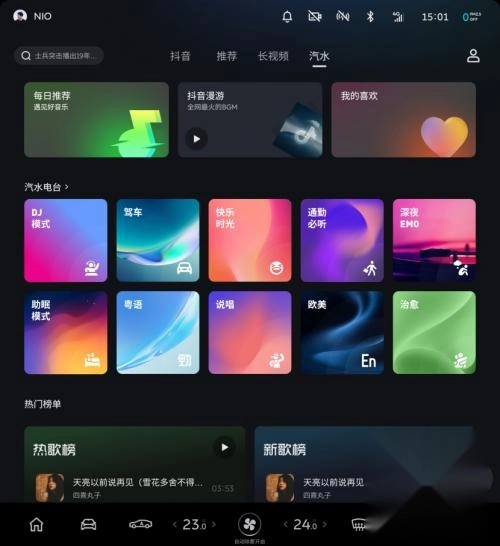 新增“汽水音乐”车端首发功能,可支持千万曲库播放,还能实现多端收藏同步。