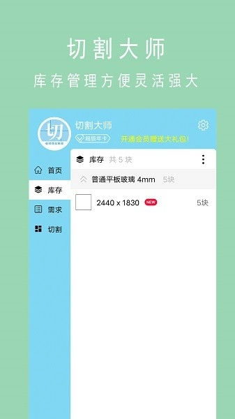 板材智能排版优化切割大师App(简称“切割大师”)是一款专注于板材(例如玻璃等)裁切排版优化的应用程序。借助该应用,用户能够根据现有的板材规格以及裁切优化的具体需求,通过勾选合适的选项,来完成切割图的计算与生成。