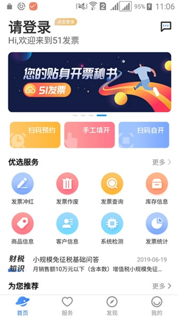 51发票软件的操作界面简洁直观,用户能快速上手,不需要花费大量时间学习和熟悉,从而提升了使用者的工作效率。