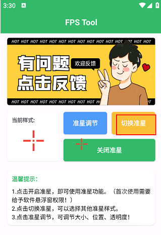 1. 启动FPS Tool准星助手,进入主界面后,选择“开启准星”功能项。