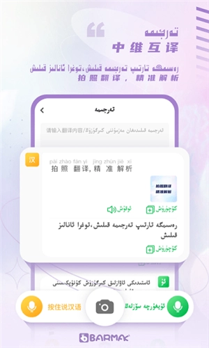 【高效维汉互译】支持语音、拍照翻译功能,覆盖日常、旅行、工作等多种沟通场景,助力无障碍交流;