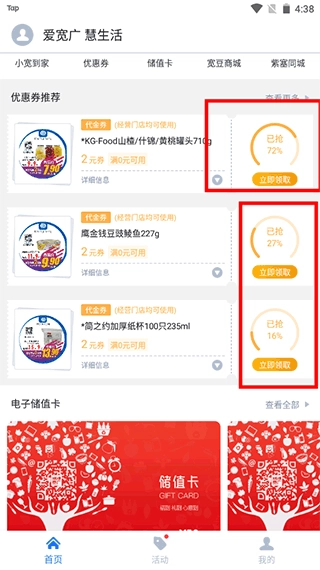 在家就能轻松抢优惠,各类礼券送不停,到店后扫一扫,立刻就能享受折扣。
