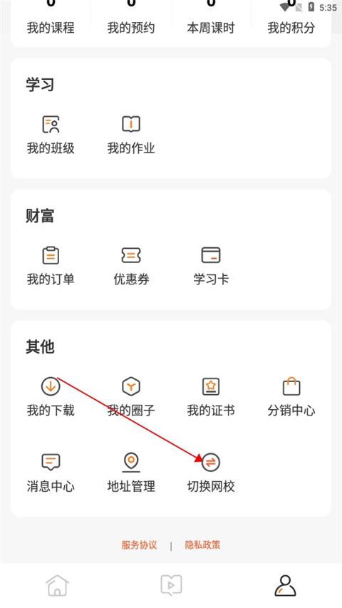 用户还可以通过点击切换网校的功能,选择不同的网校来进行学习。