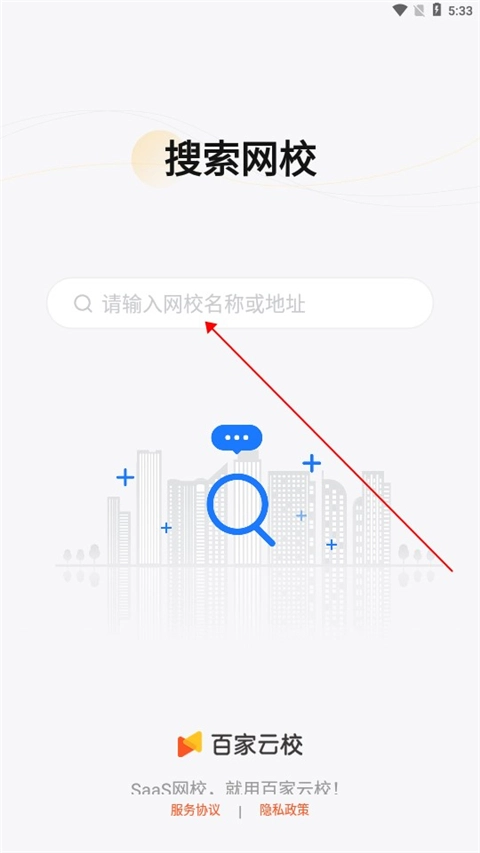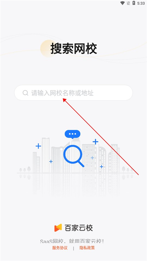 在本站安装并打开百家云校专业版,进入软件首页后,用户就能搜索自己想学习的网校了。