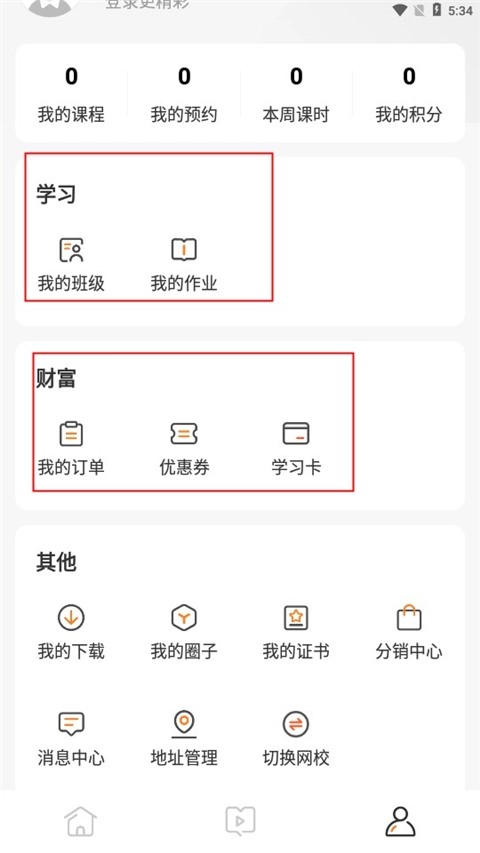 点击进入“我的”页面,这里为用户提供了诸多实用的学习功能板块。