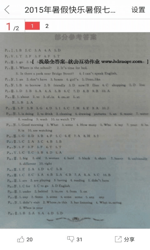 【寒暑假作业答案汇总】 暑假作业末尾被撕下的答案全都整理在这里了。