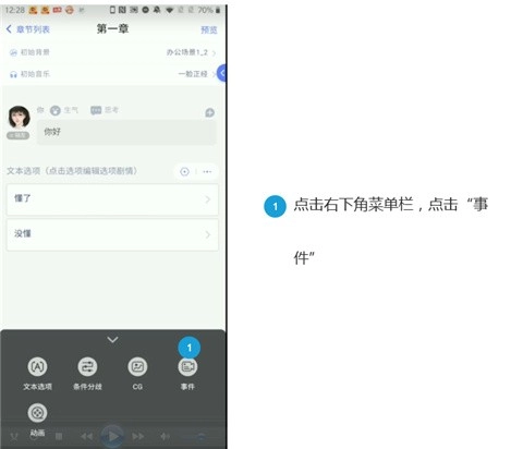 11、然后再次点击“事件”,就能开始编辑章节了