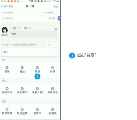 10、进入正式的章节编辑环节时,我们还得对章节相关信息进行完善,像背景图、章节名称、章节音乐之类的内容都要处理到位。