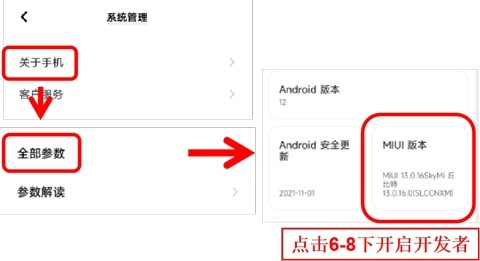 打开手机的【设置】选项,进入后找到【关于手机】,接着连续点击6到8次【版本号】,直到手机屏幕上出现【已开启开发者模式】的提示即可。