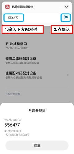 ④ 下滑手机通知栏,输入6位配对码,点击右侧按钮,稍等一会儿,小鸡游戏世界就会自动激活