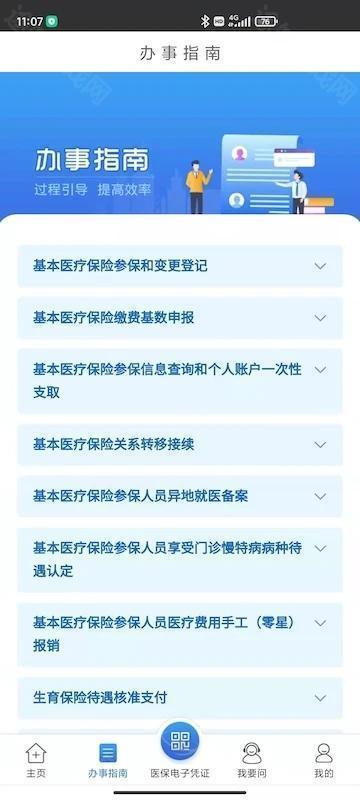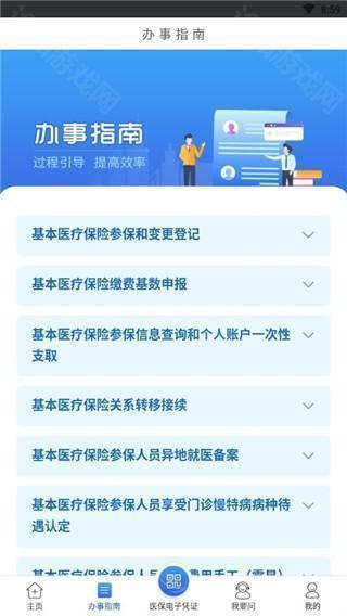 1、在本站下载并安装江苏医保云应用,打开后进入首页,即可查看平台提供的各项功能模块。 2、点击首页的“办事指南”选项,就能查看各类服务事项的具体办理流程说明。