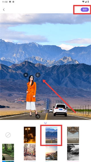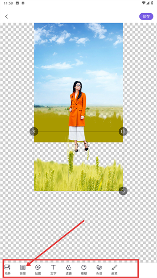 4、完成背景添加和编辑操作后,点击界面右上角的【保存】按钮,即可将制作完成的图片导出并存储下来。