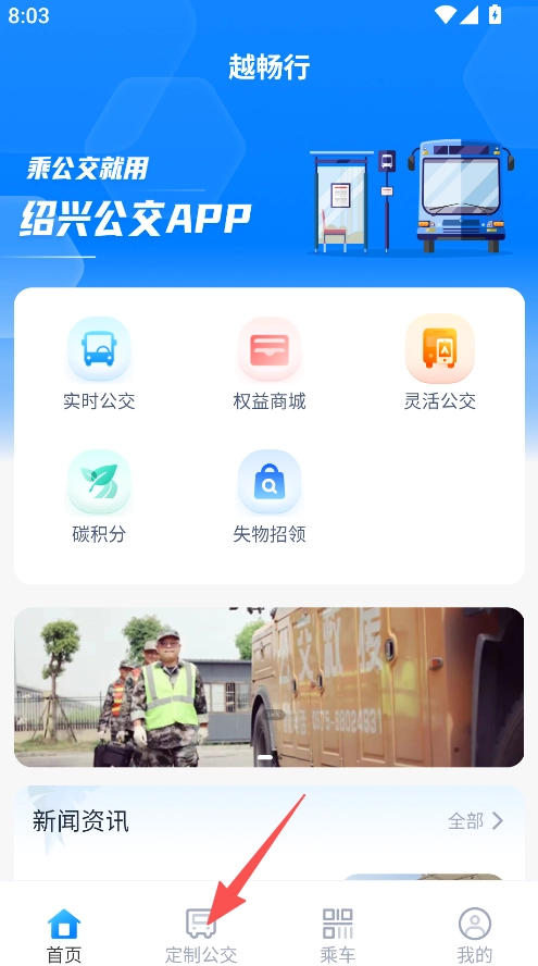 1、打开越畅行,点击定制公交板块。