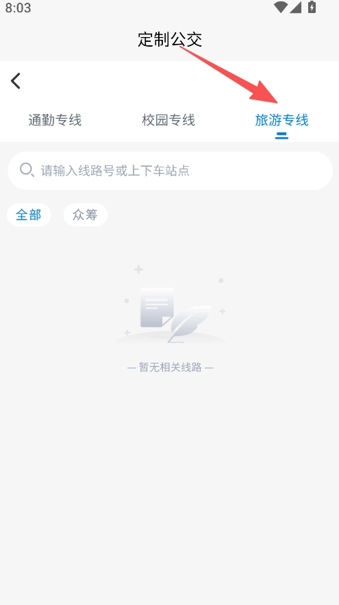 2、在定制公交页,选择旅游专线分类。