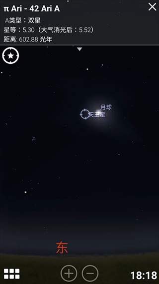 用户轻点屏幕上的天体,就能查看它的名称、亮度、坐标、物理参数等详细信息;若是行星、卫星这类天体,还会额外呈现轨道信息等相关内容。