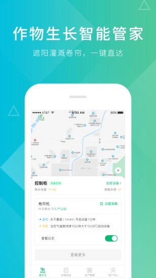 无论您身处何地,都能借助睿农宝?智慧农业云平台远程操控补光灯、风机、卷帘机等生产设备;您也可以通过设定策略,结合环境参数的实际情况,让设备实现智能运行,从而确保农产品在适宜的环境中生长。