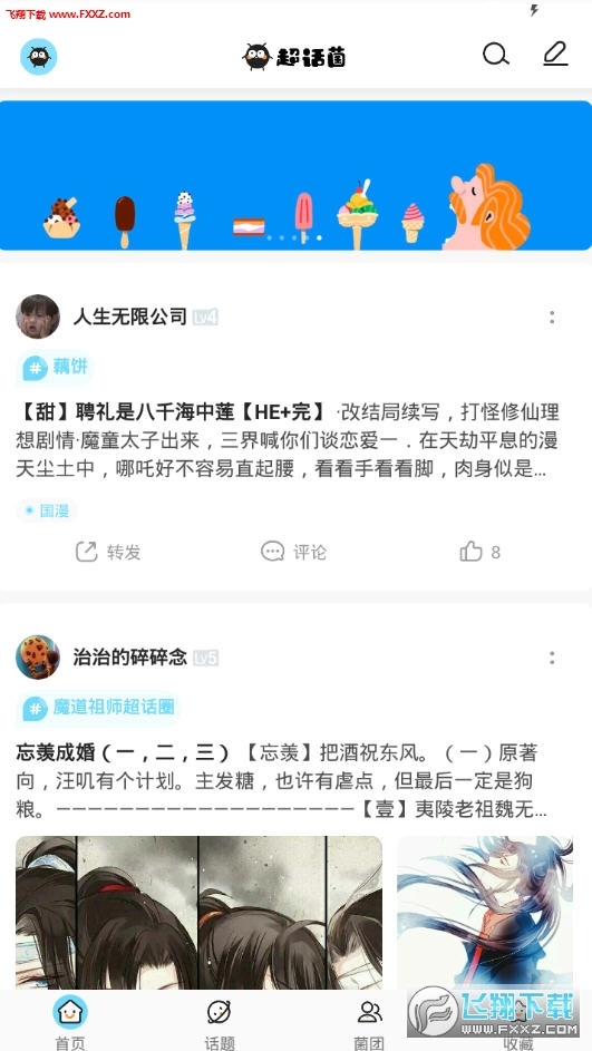 超话菌是一个二次元社区社交平台,在这里可以阅读到各种类型的小说,还能认识相同爱好的好友。不管你是喜欢手办,还是喜欢看小说,都能在这里找到属于自己的天地,赶快上超话菌找到你的部落吧。