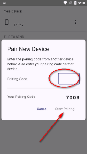 6、最后输入设备码并点击开始配对,配对完成后就能进行传输了。