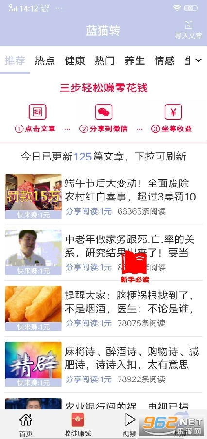 一款轻松的赚钱软件,拥有海量阅读资源,每日都会为用户更新赚钱任务,让你有钱可赚,还能通过转发获得额外分红奖励,感兴趣的话就来体验吧!