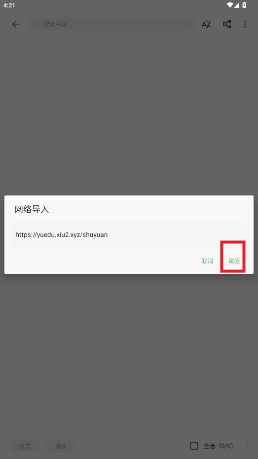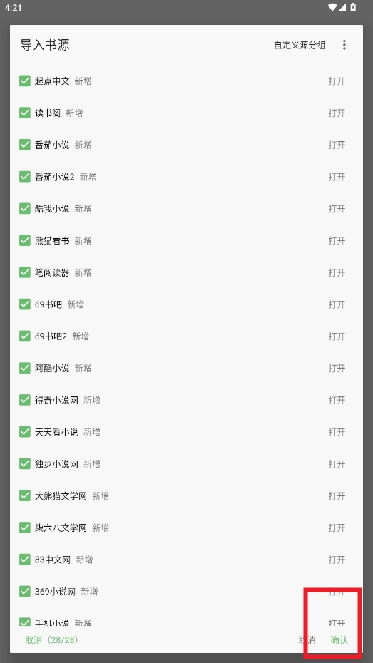 勾选要导入的书源