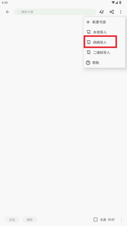 选择书源导入方式,这里以网络导入为例