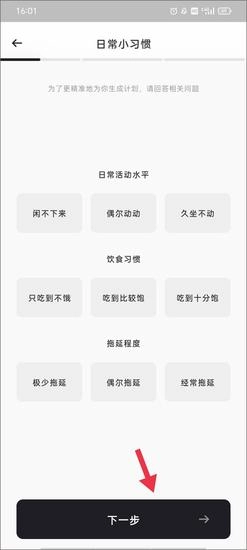 接着重新挑选性别、出生日期、身高体重这类信息,再点击下一步。