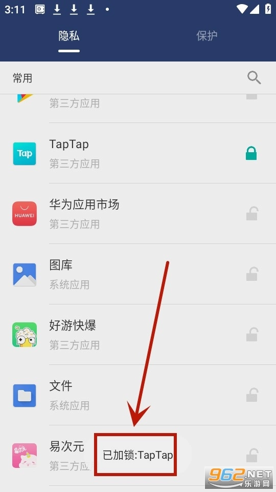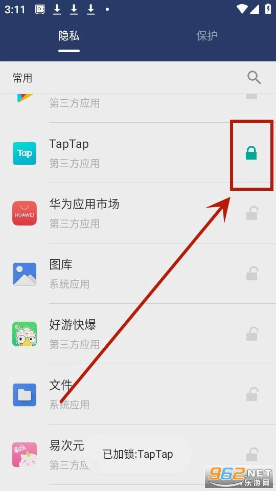 向下滑动屏幕,挑选你希望进行加锁的应用程序,