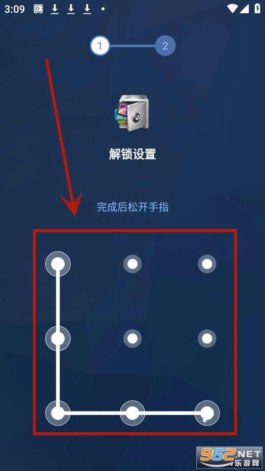 打开应用锁功能,先绘制出你设定的解锁图案,之后所有被你加密的应用,都将通过这个图案来解锁访问。