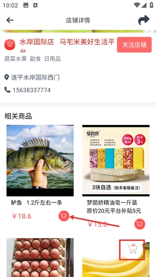 3、在店铺详情页,点击商品对应的购物车图标,可将该商品添加至购物车。