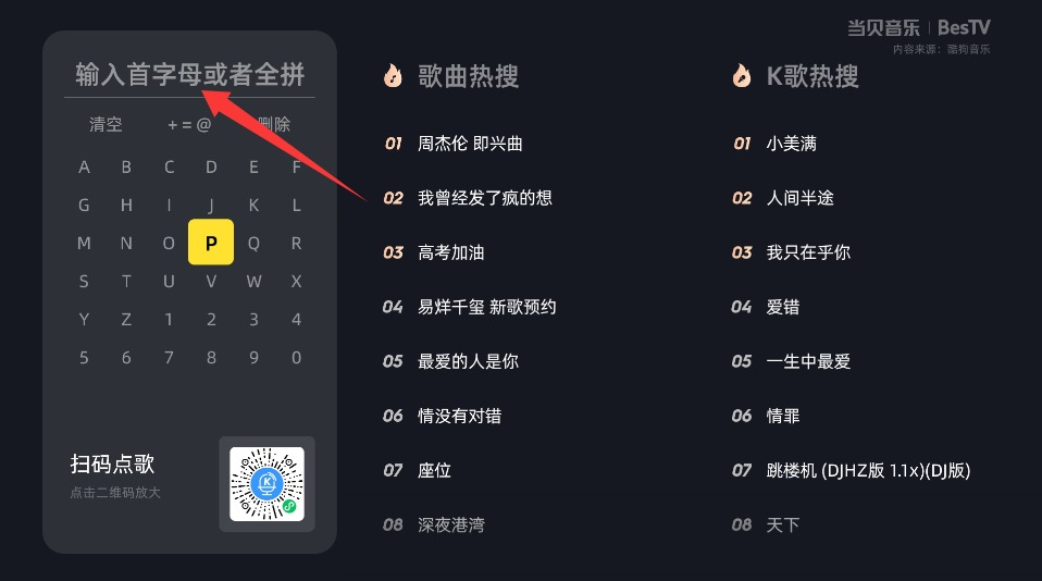 2. 利用拼音检索功能,输入歌曲名称的关键字,系统会自动匹配并展示相关音乐作品列表。