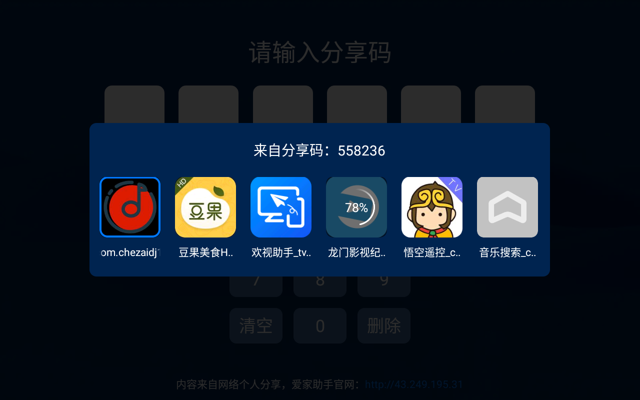 爱家助手,一款极为智能的电视管理工具。用户只需输入分享码,就能看到多款电视直播软件,而且都能免费安装,便捷无比。这些软件功能各异,各具特色,打开即可免费观看电视及电视直播。它是专门为电视打造的管理工具,软件历经多重查杀,里面的所有软件均安全绿色,用户使用起来十分便利。